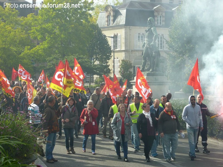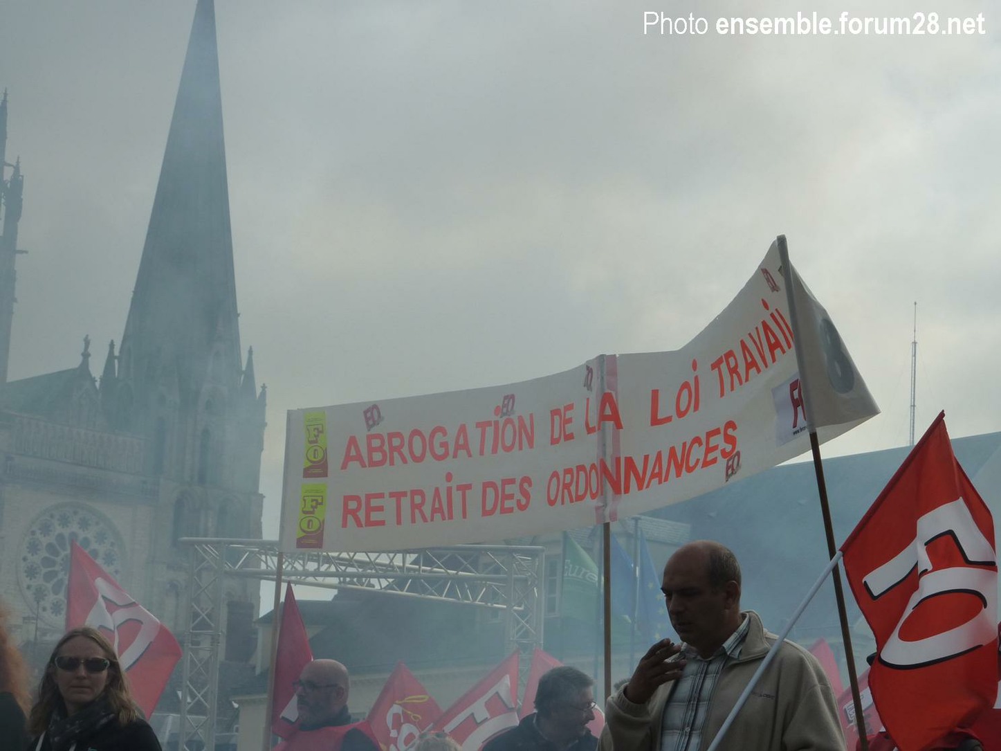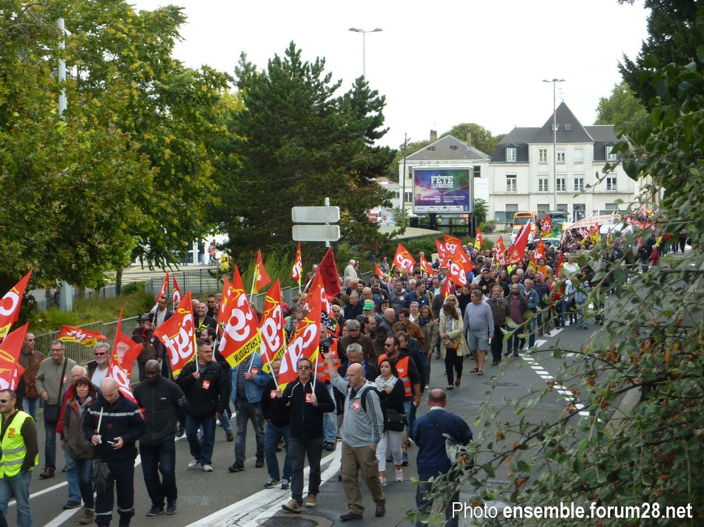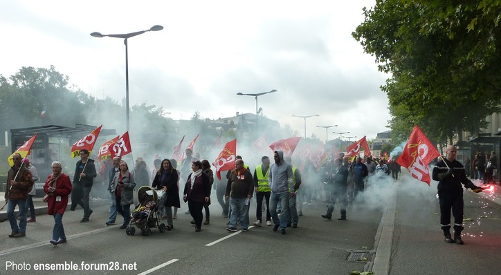 Foi d’agent des RG « Il y a du monde ! ». C’est ce que nous avons entendu, prononcé par un personnel bien connu de ce service recréé par Valls en 2014 sous le nom de Service Central du Renseignement territorial (SCRT). Et de fait, c’est 600 manifestants qui ont défilé le 12 septembre, à l’appel des unions départementales CGT et FO, avec le soutien de la FSU-28, pour la première manifestation contre la loi Travail XXL Macron-Philippe-Pénicaud.