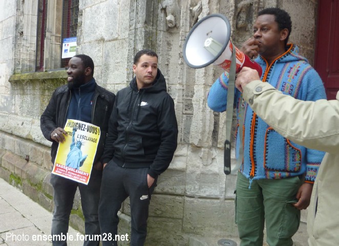En fin de parcours de la manifestation, symboliquement devant la Sous-Préfecture, Jeff Habimana, regrettant la trop faible mobilisation (une trentaine de personnes : un tiers de jeunes , les autres étant pour la plupart des militants des organisations de gauche) a suggéré, pour continuer ce combat, d’organiser une conférence-débat et, peut-être, une manifestation à Chartres.